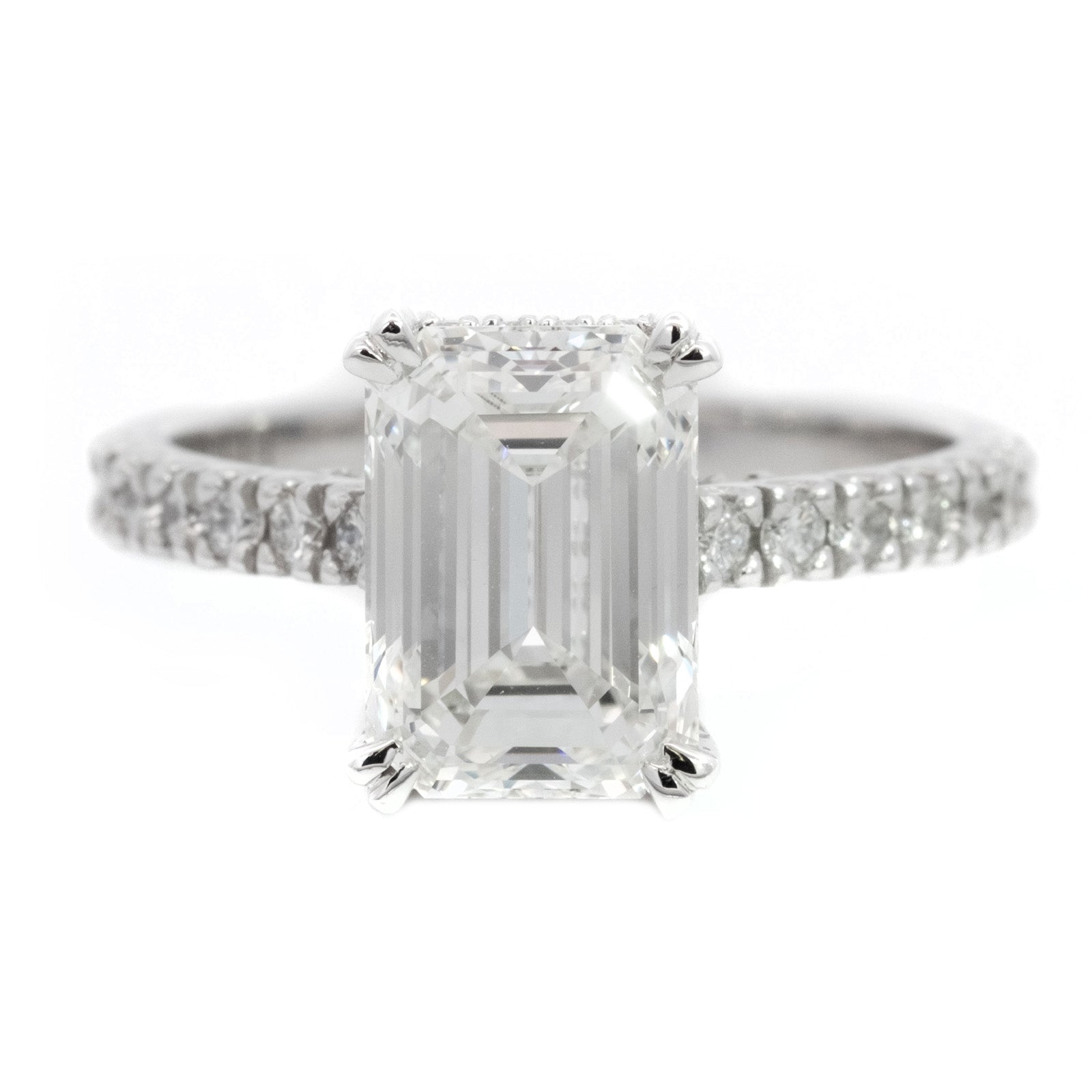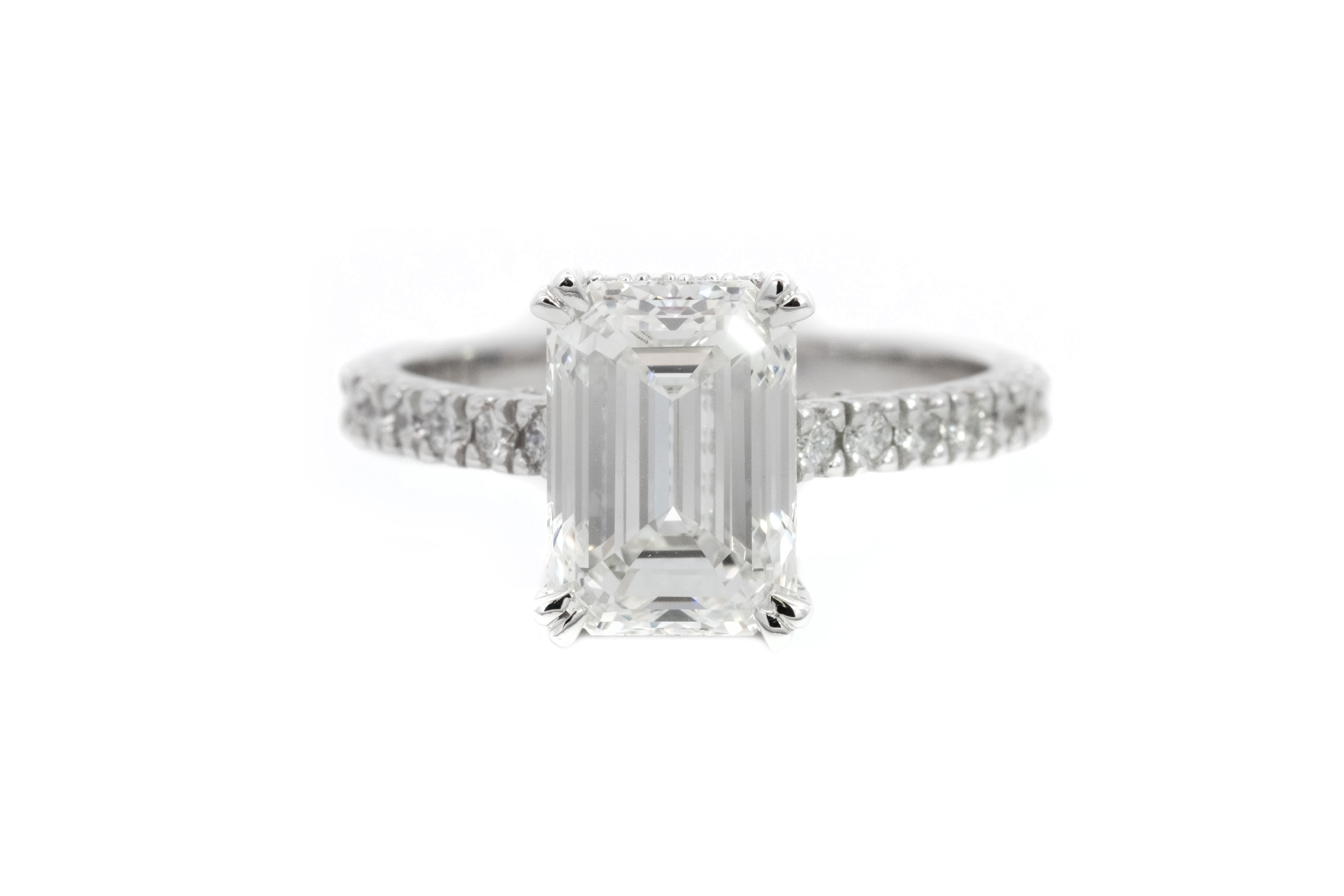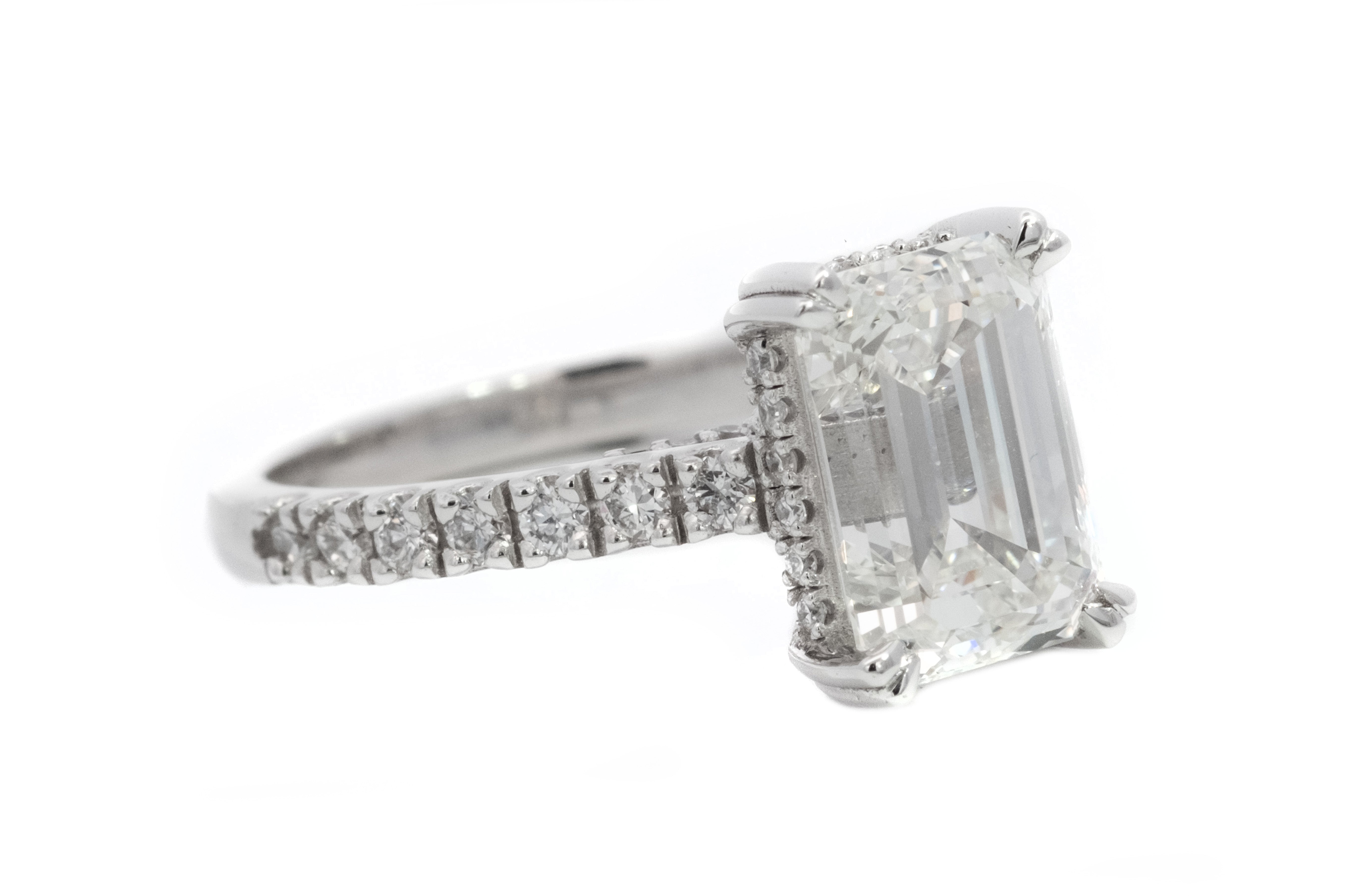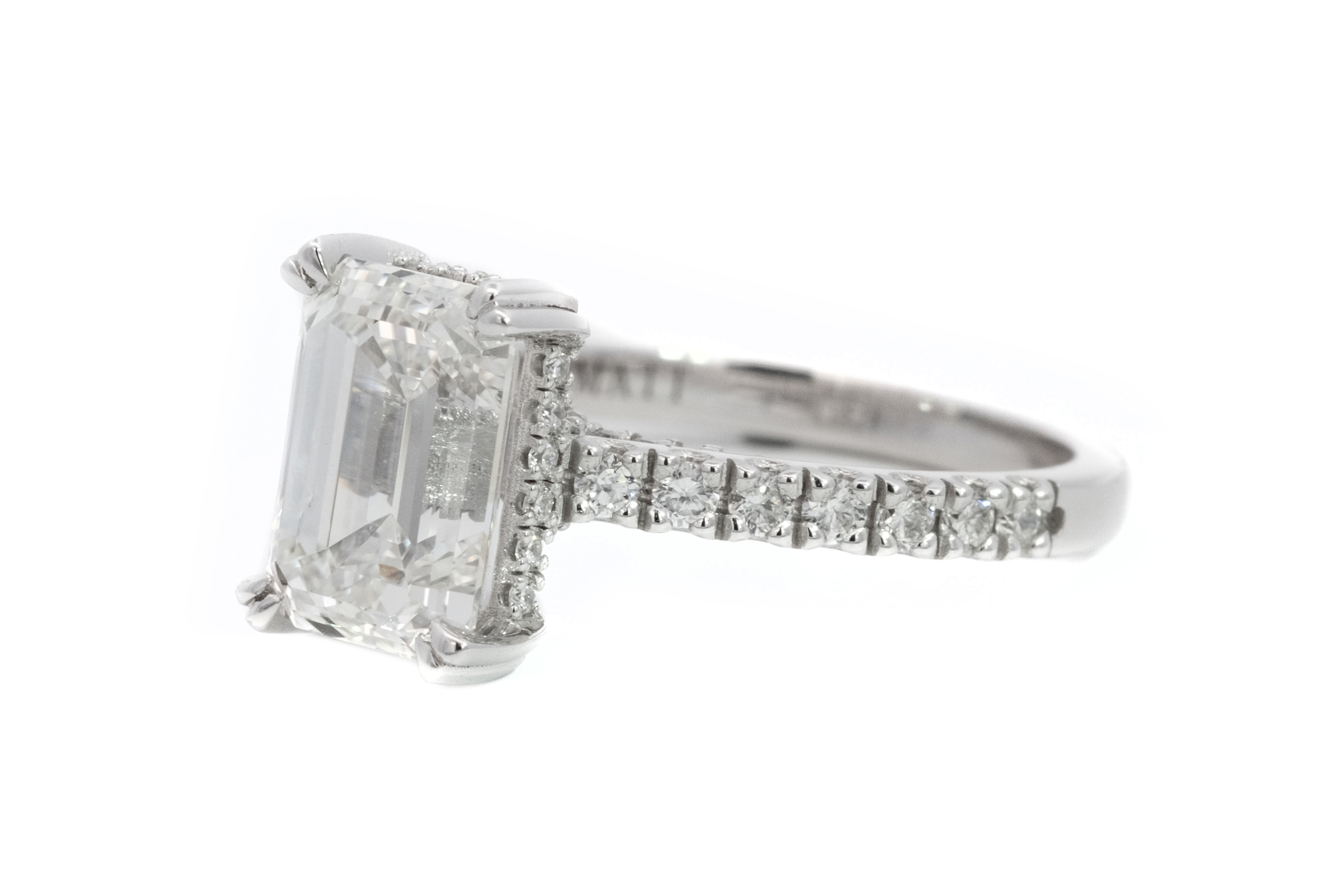 3CT Lab Grown Emerald Cut Hidden Halo Set In 18ct White Gold